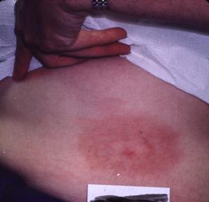 The patients that Dr. Masters sees often present with erythema migrans lesions (Figs. 1-3) that are very similar to those seen in the northeastern US, an area that is highly endemic for Lyme disease, and in Europe. Many patients have sequelae, including Bell's palsy, third nerve palsies, and arthritis.